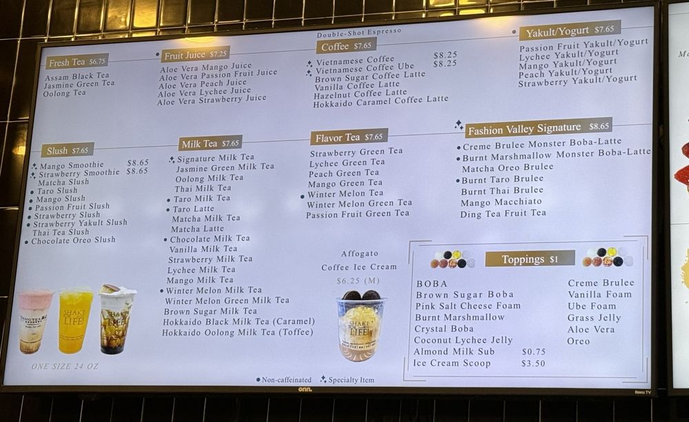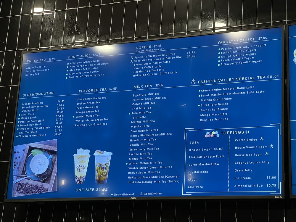 Ding Tea Fashion Valley, located at Fashion Valley Mall in San Diego, offers a range of delicious bubble teas and desserts. Customers enjoy the welcoming and clean vibes of this Asian-owned establishment, praising the friendly staff and customizable menu options. The taro slush boba is a standout, with a rich, smooth flavor that satisfies even on a chilly day. While prices may be on the higher side, the quality and ambiance make it worth the splurge. The modern interior design, complete with black leather seats and hanging plants, creates a cozy yet stylish atmosphere for relaxing or recharging during a shopping trip. With options like bubble waffles, ice cream scoops, and macaroon ice cream, Ding Tea Fashion Valley offers something for everyone to enjoy. Next time you're in the area, stop by Ding Tea for a refreshing and satisfying experience.